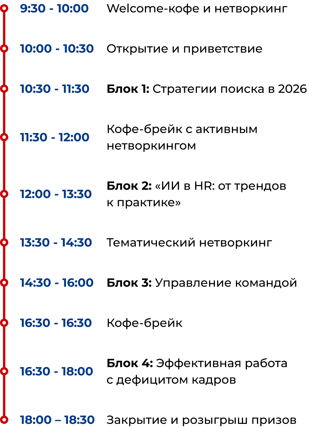 Однодневный образовательный интенсив, посвященный развитию ключевых компетенций современного HR-специалиста. По завершении программы участники получат сертификат. Программа включает теорию и практические занятия с разбором реальных кейсов.